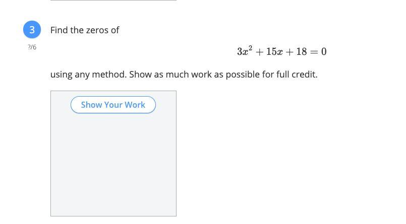3x²+15x+18 = 0 (Where a = 3, b = 15, c = 18)