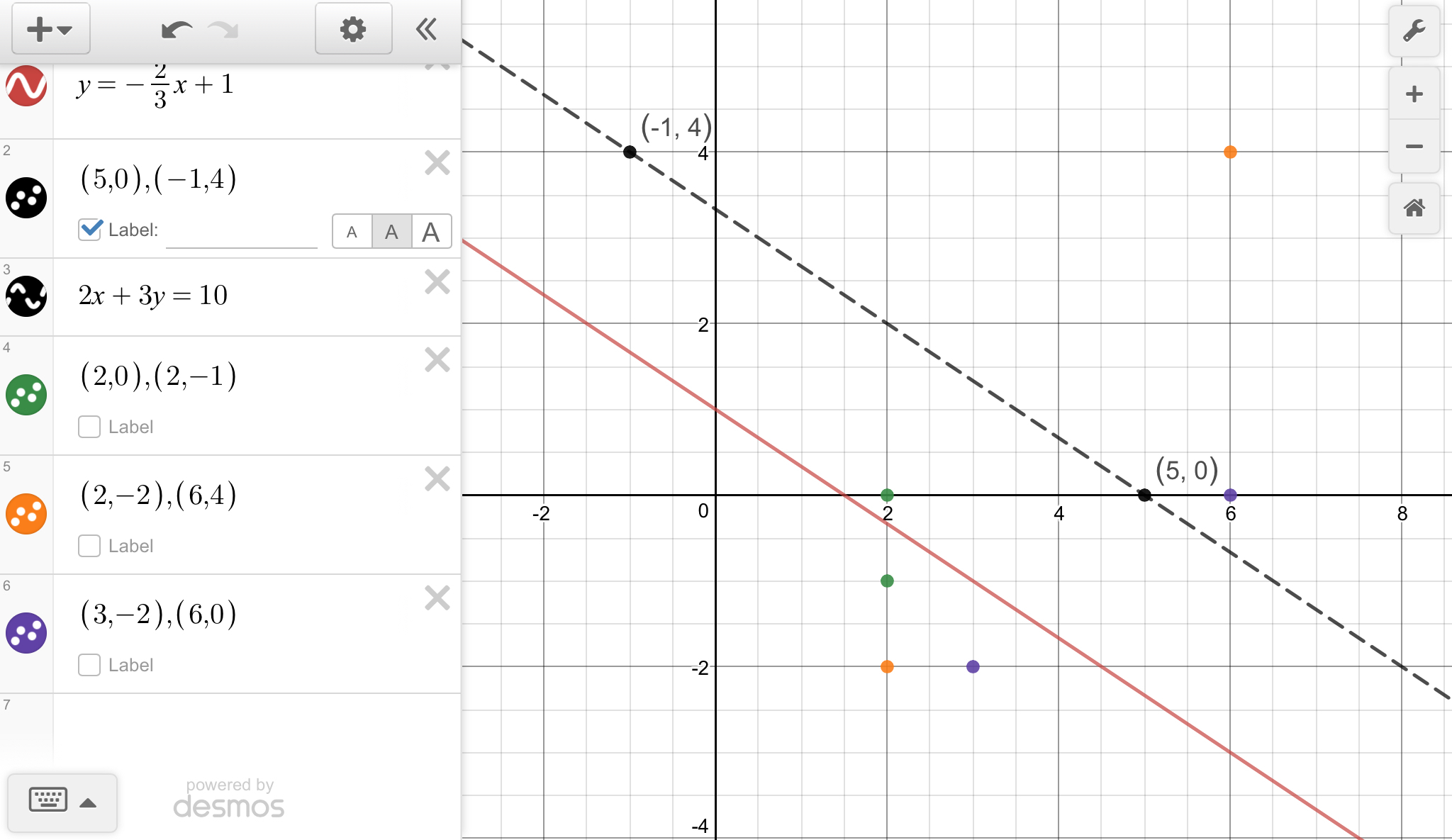 The 1st set (5, 0), (-1, 4) matches that description.