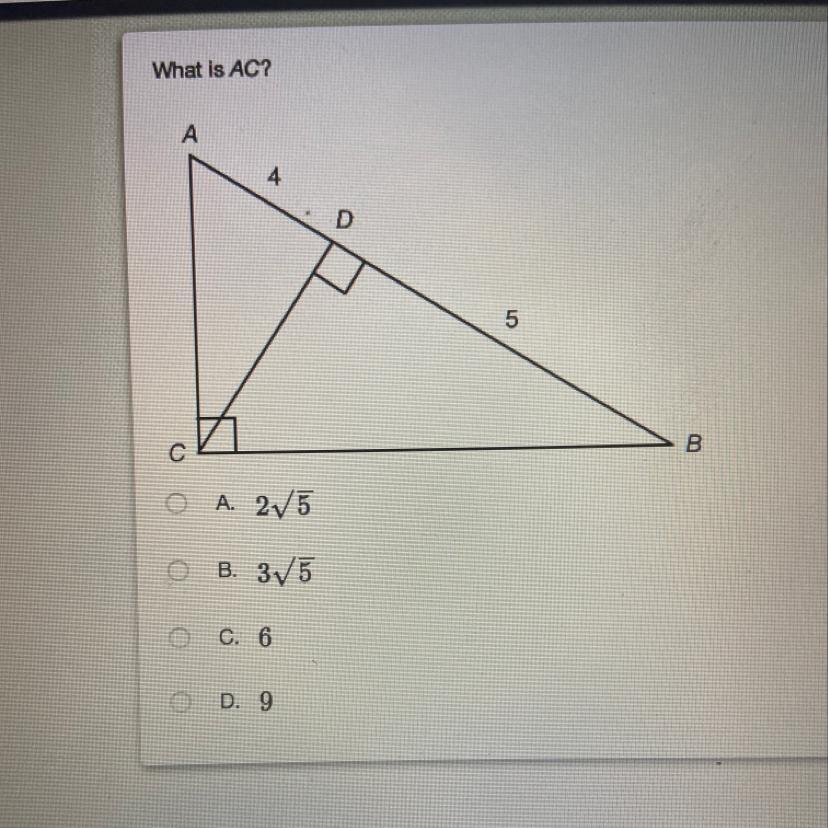 We know that m∠D is 45° (by using the sum of interior angles in a triangle) so therefore, ΔDCE is a 45 - 45 - 90 triangle (the 45, 45, and 90 refer to the angle measures). The ratio of sides in a 45 - 45 - 90 triangle is 1 : 1 : √2 where the 1s are the sides and the √2 is the hypotenuse. We need to solve for x in x : x : √22. If you notice that √22 = √2 * √11, we can use this to find x, therefore, x = 1 * √11 = √11 so CD = √11 and CE = √11.
