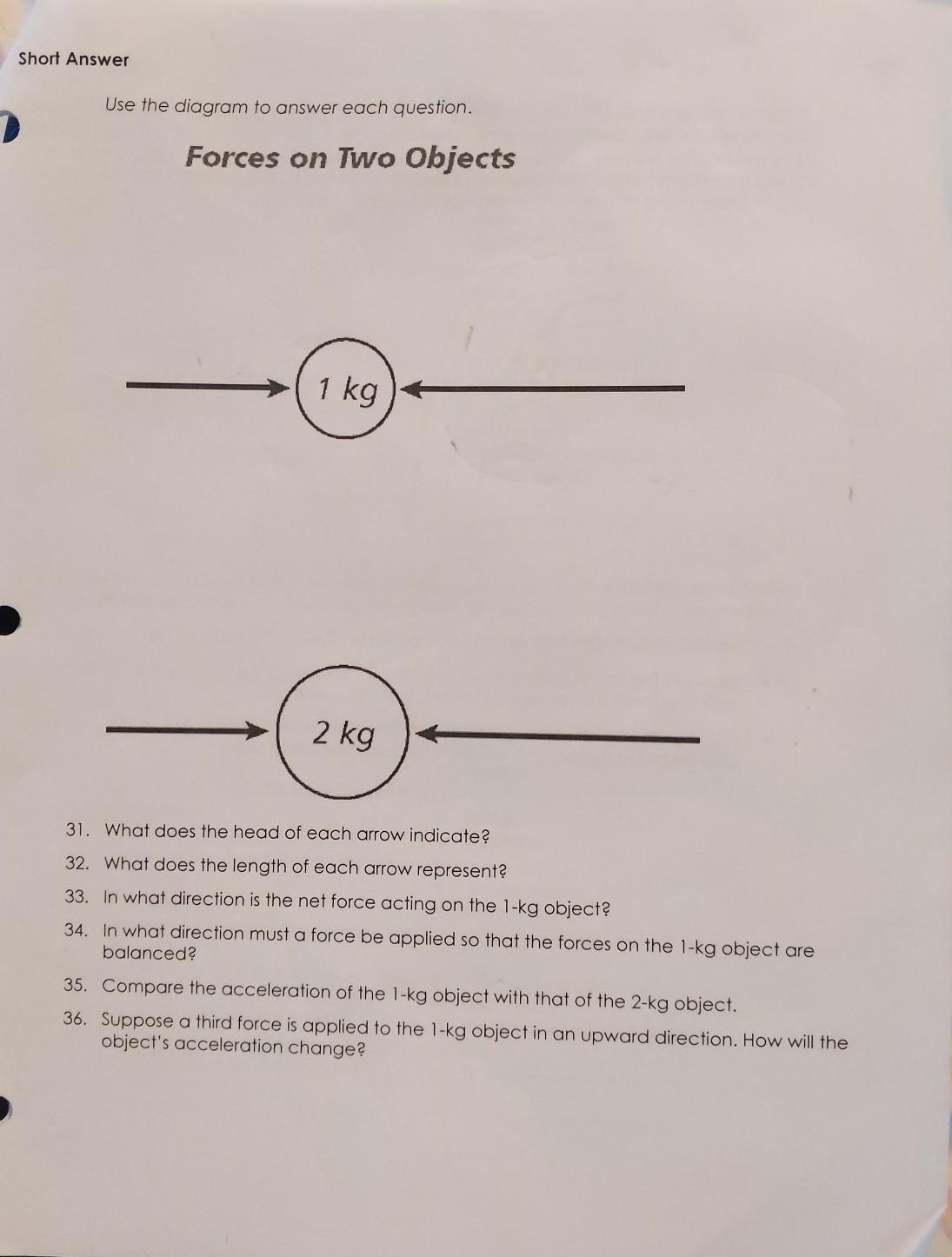 In part 33), we said that the net force acting on the 1-kg object is to the left. Therefore, in order to produce a net force of zero, we must add another force acting to the right, in order to balance the current net force pointing to the left.