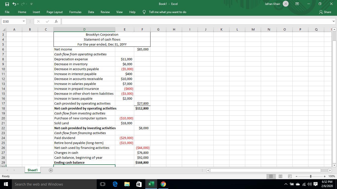 Prepare a statement of cash flows for the past year using the indirect method.