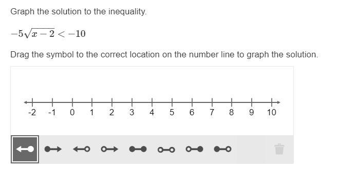 So, drag the fourth option onto 6 on the line. This is an open circle and points to the right, so it includes all values greater than 6 not including 6.