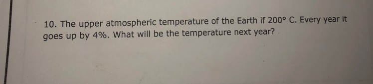 The temperature goes up by 8 degrees every year. Add 8 to the original amount, 200