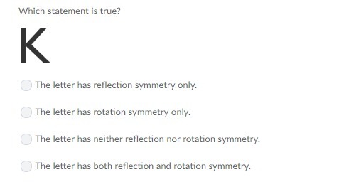 <em><u>K ======> Letter Choice, (A); The letter has Reflectional Symmetry only.</u></em>