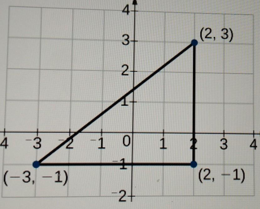 The hypotenuse is from the point (-3, -1) to point (2, 3)