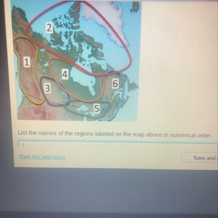 List the names of the regions labeled on the map above in numerical order