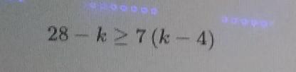28 minus k is greater than or equal to 7 times the product of k minus 4