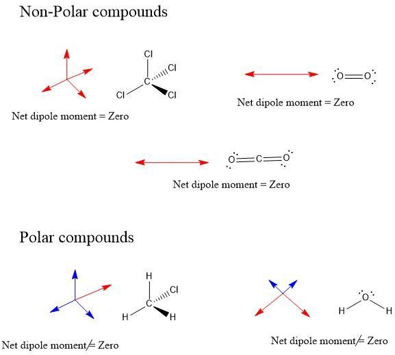 In this case, we also have a linear structure in which the magnitude of the dipole moment is the same, but the direction is the <u>opposite</u>. Therefore the dipole moments are canceled and the molecule will be <u>non-polar</u>.