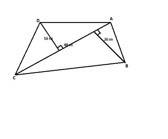 We have been given that the length of a diagonal of a quadrilateral shaped field Is 48 m. The length of perpendicular dropped on it from the remaining apposite vertices are 16 m and 26 m.