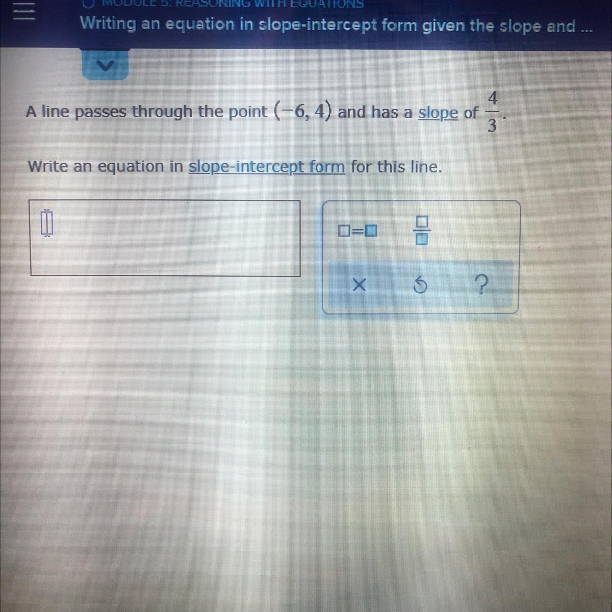 plotted with a blue line passing through (0,-3) and(0.75,0).