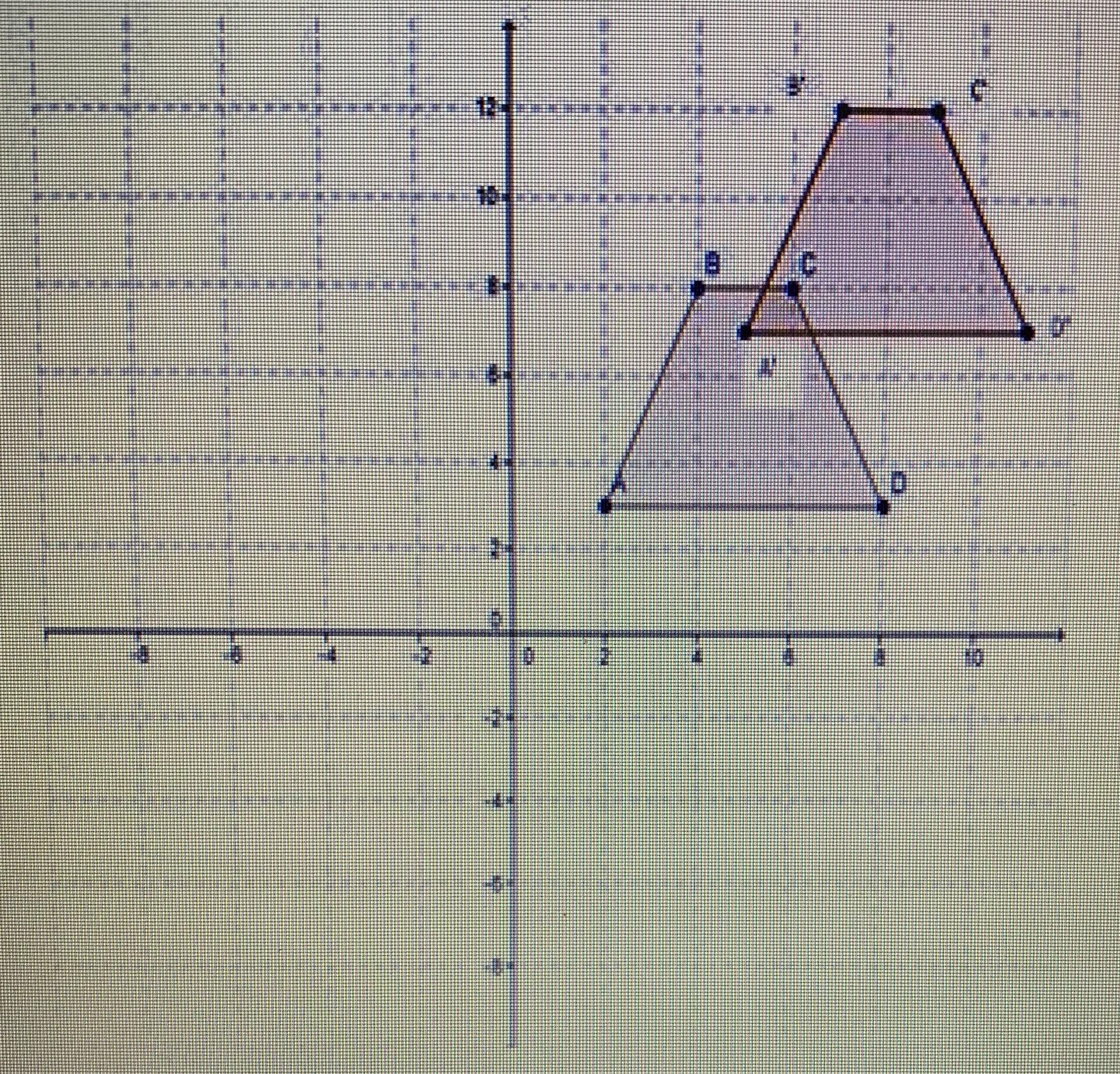 In this problem, we have a quadrilateral named as ABCD. Recall that a quadrilateral is a two-dimensional shape having four sides. So, we need to identify what transformation has been performed to get A'B'C'D', which is the same quadrilateral shifted certain units right and up. So take one point, say, B, so how do we need to do to obtain point B'? well, we need to move that point 3 units right and 4 units up, but how can we know this? just count the number of squares you need to move from B to B' horizontally and vertically, which is in fact  3 units right and 4 units up.