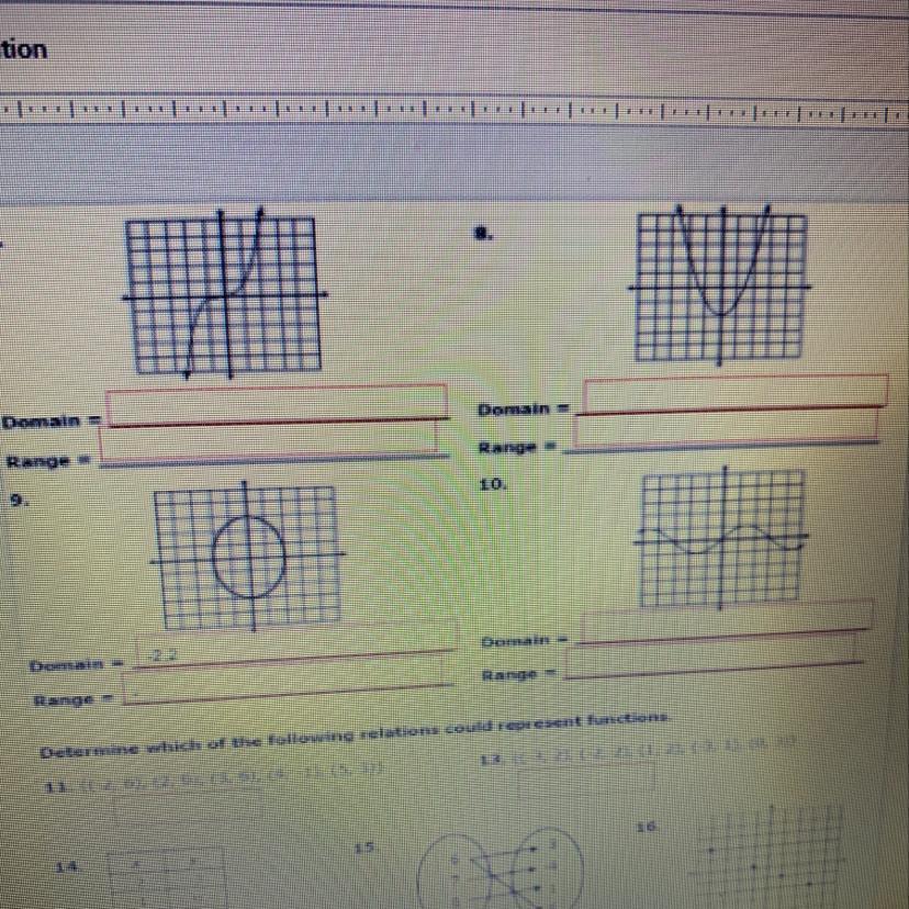9. The domain is [-2, 2], as the x values only range from -2 to 2. The range is [-3, 3] as the y values range from -3 to 3.
