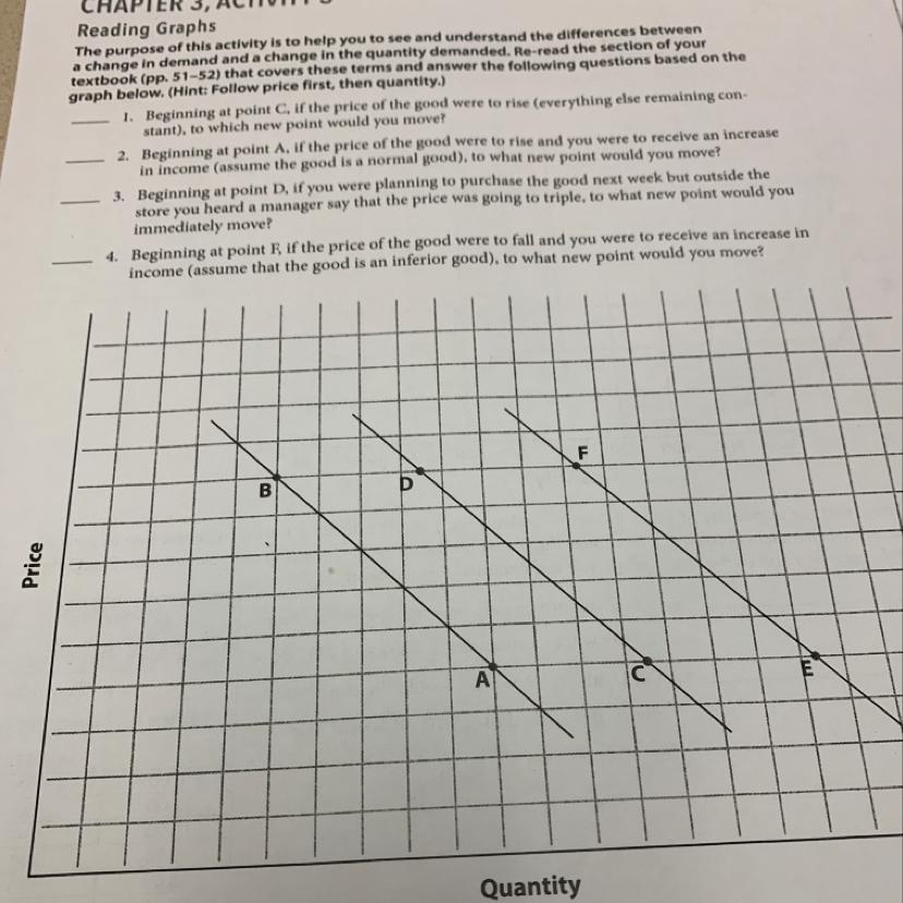 Number 3; I'll move to point F (change in demand)