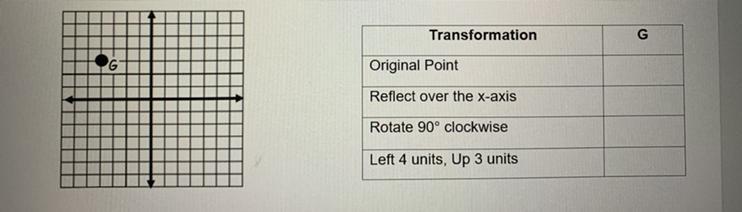 G(-4, 3) → [(-4 - 4), (3 + 3)]