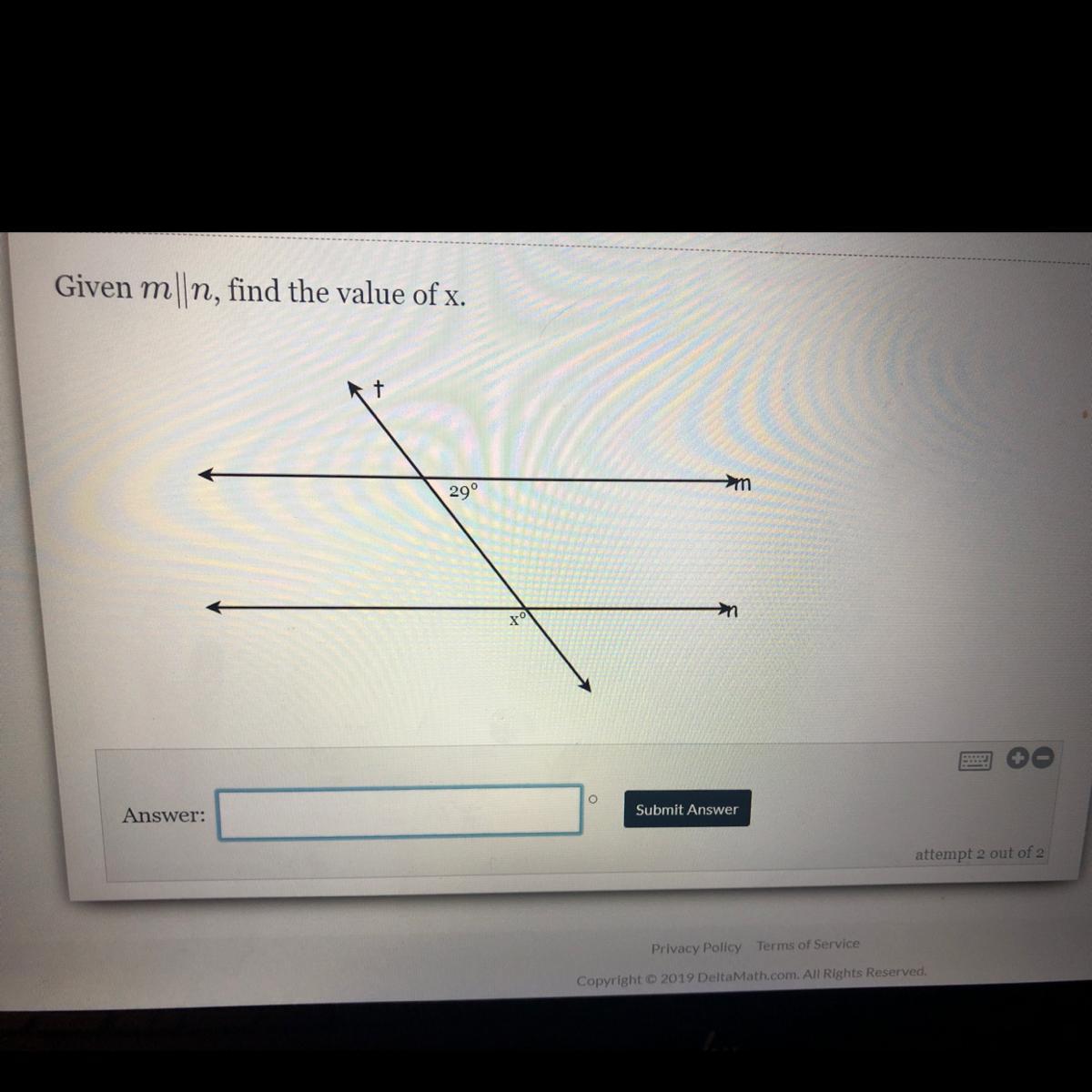 The adjacent angles are supplementary (they add to equal 180 degrees) so you can set up an equation to solve for x.