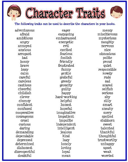 Here is a chart of Character Traits