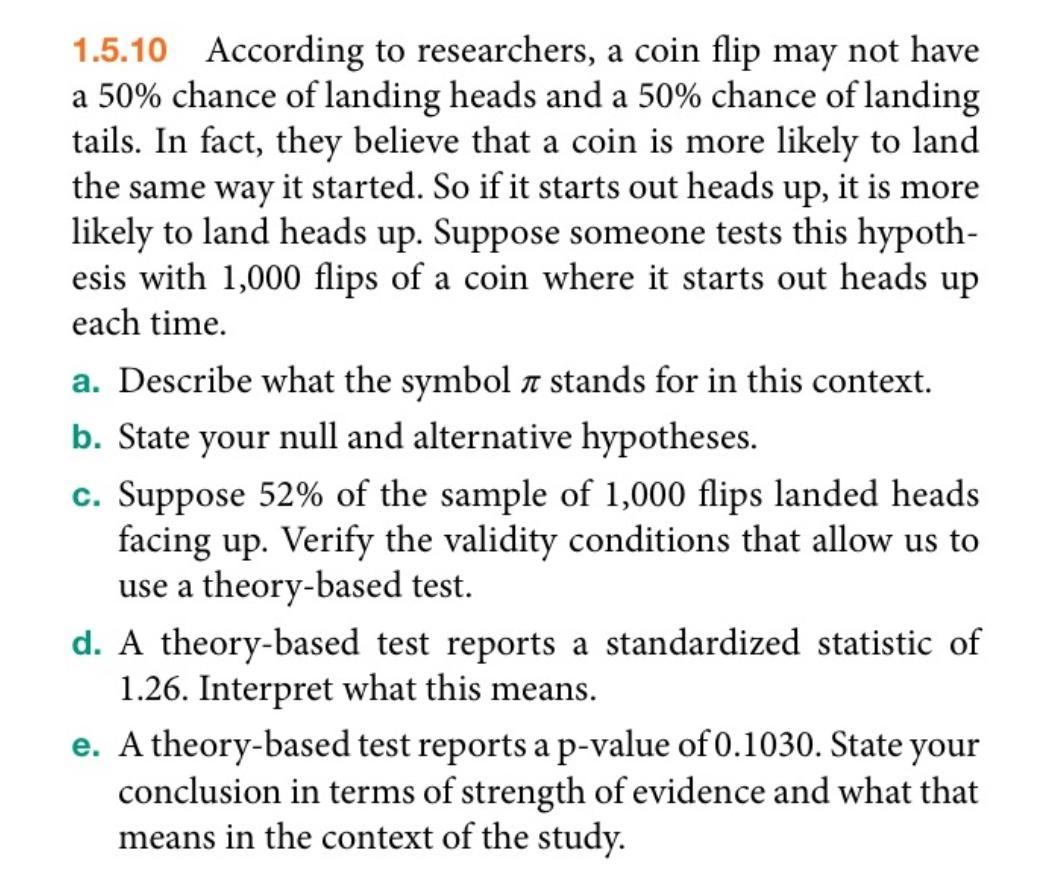 For this question where we want to verify that the coin is likely to turn up heads more times when tossed multiple times, starting with a first toss that gives a head. That is, the proportion of heads in multiple tosses is more than 0.5 given that the first toss was a head.