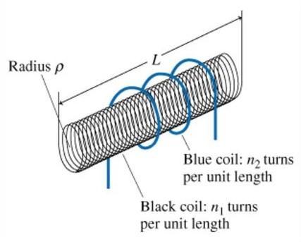 Consider two solenoids that are wound on a common cylinder as shown in fig. 1. Let the cylinder have radius 'ρ' and length 'L' .
