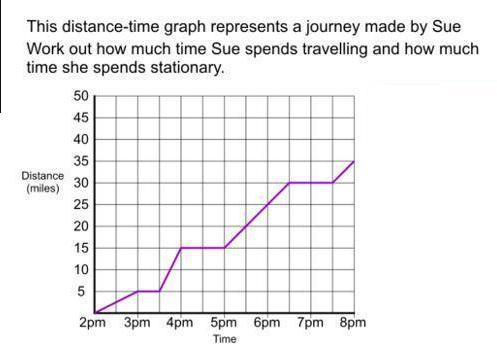 Answer: Sue spends travelling 3.5 hours and spends stationary 2.5 hours