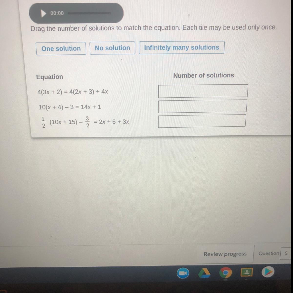 (10x + 15)/2 - 3/2 = 5x + 6 export like terms to the same side of the equation and add/subtract like terms