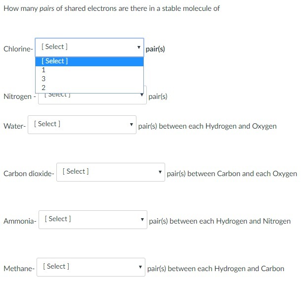 To find the pairs of shared electrons in a covalent bond, you first have to know the formula of the substance, as well as the number outermost shell electrons of the constituent elements.