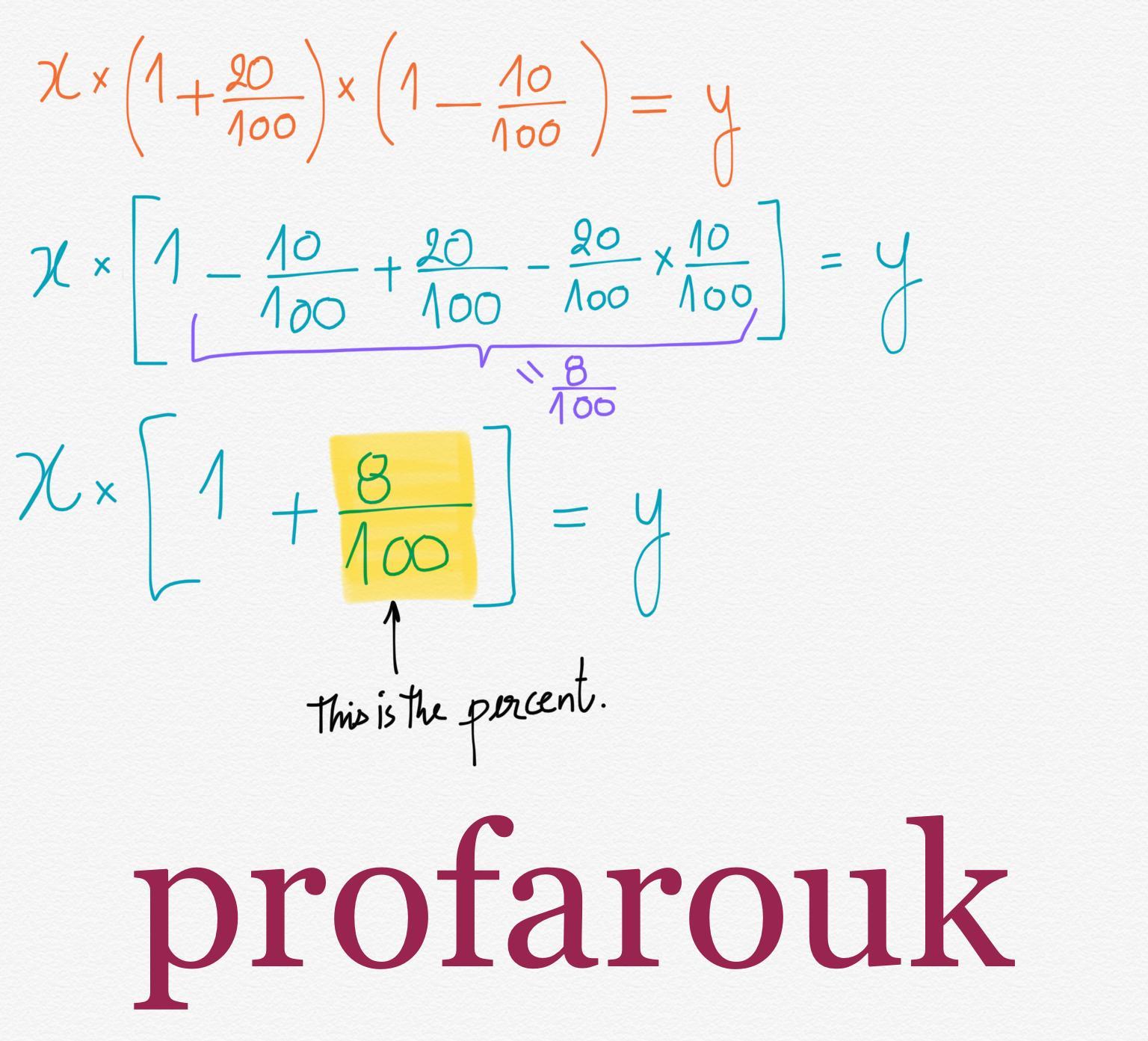 x(1+20/100)(1-10/100) = 20(1+20/100)(1-10/100) = 20(120/100×90/100)