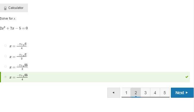 ... x = (-7 ±√(7²-4(2)(-5)))/(2(2))