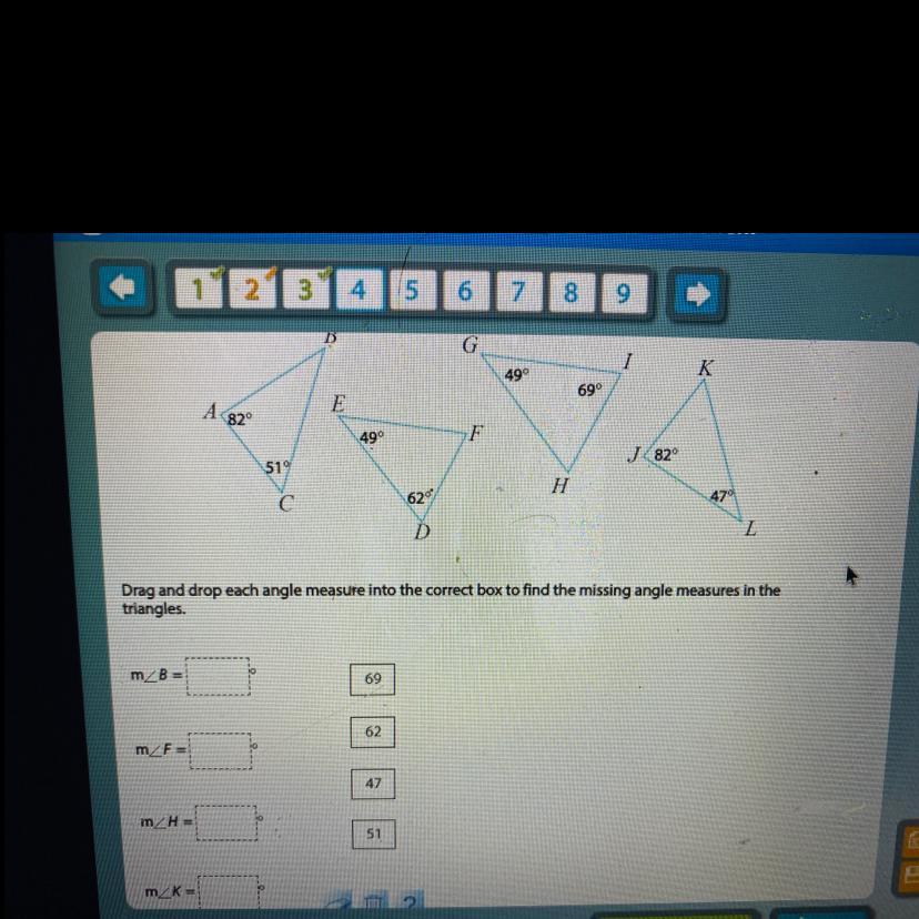 The answer to your question is ∠B = 47, ∠F = 69, ∠H = 62, ∠K = 51