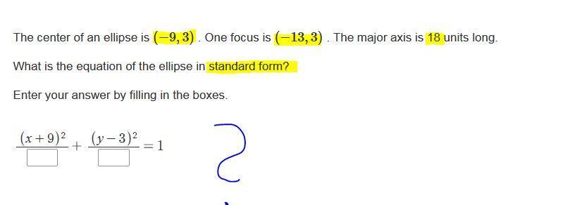 ∵ The center of the ellipse is (-9 , 3)