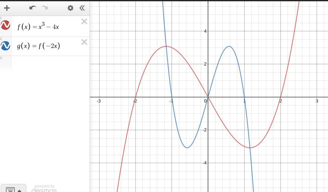 Both of these transformations result in g(x) being a horizontally compressed horizontal reflection of f(x).