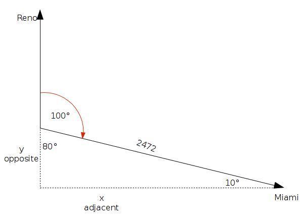 Reno is "y" north and "x" west from Miami