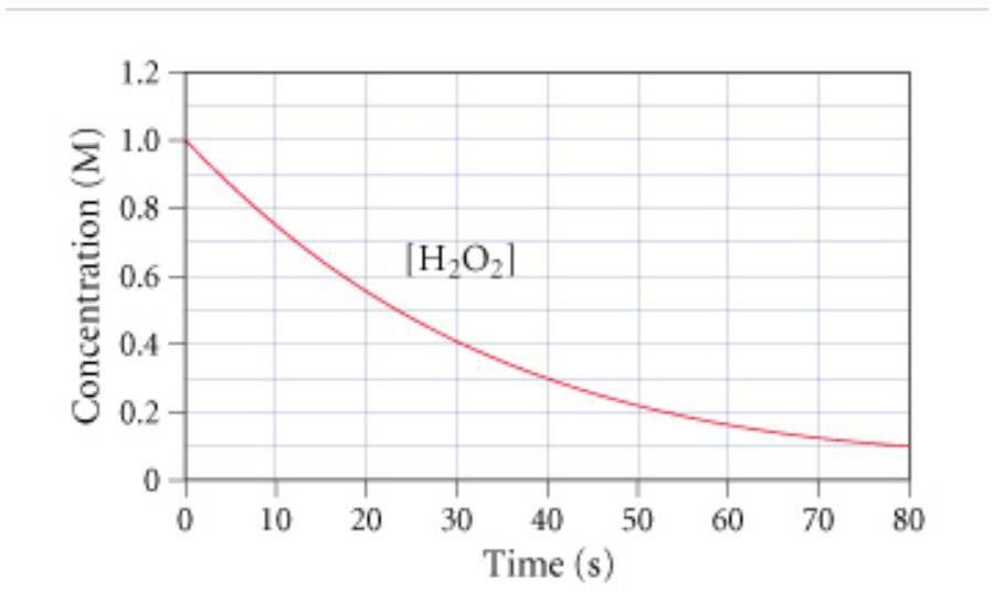 You can read the approixmate concentration of H₂O₂ at the time 50 s. It is about 0.2M.