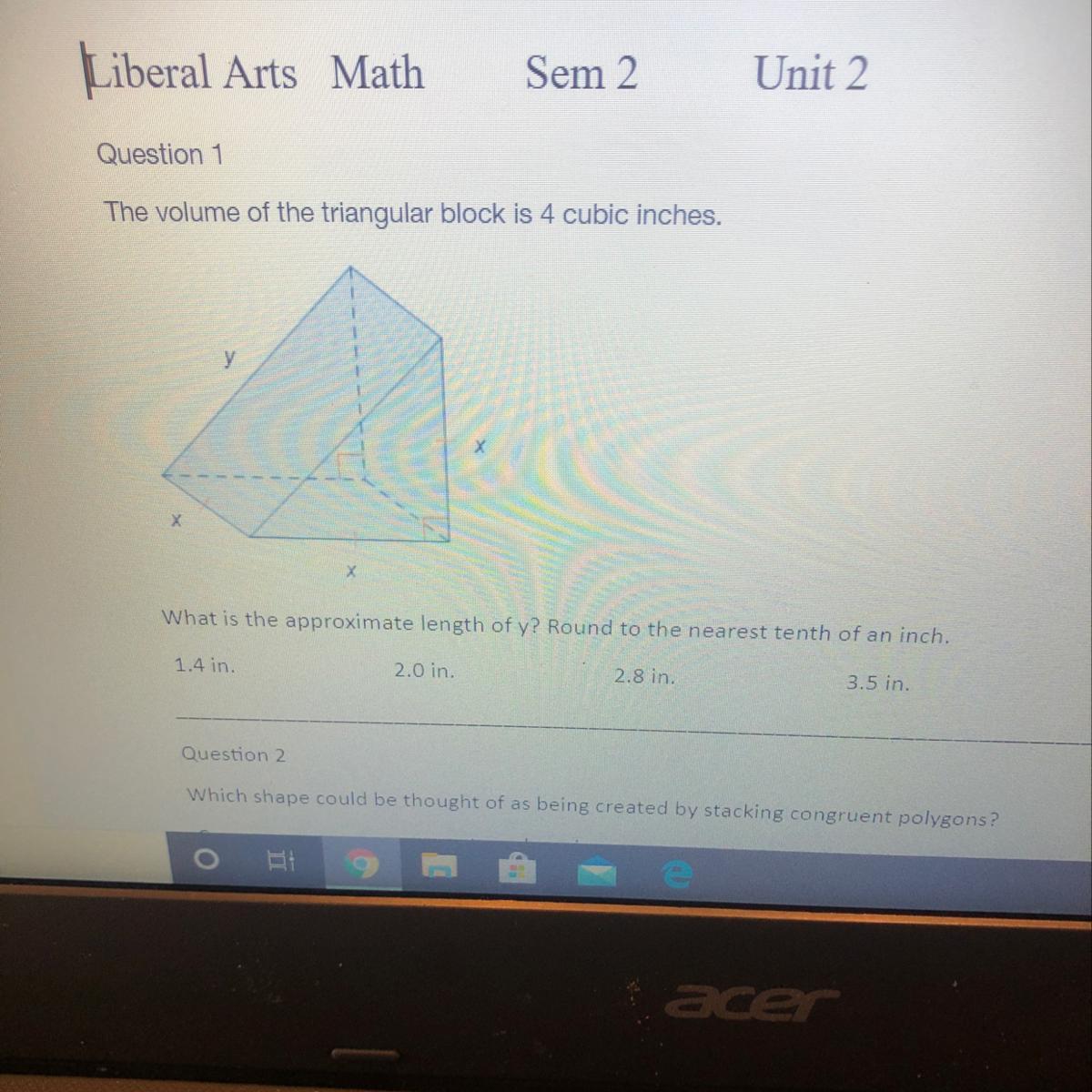 y² = x² + x² = 2² + 2² = 4 + 4 = 8 ( take the square root of both sides )
