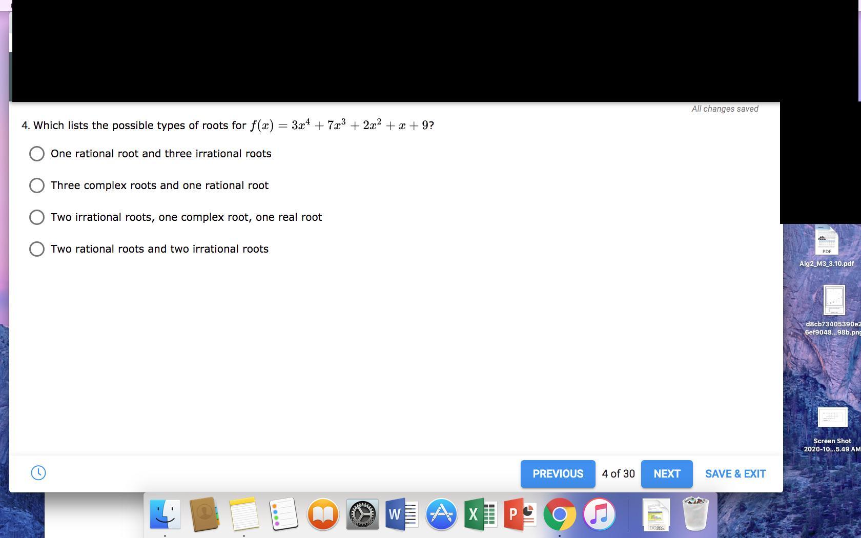 Three complex roots and one rational root