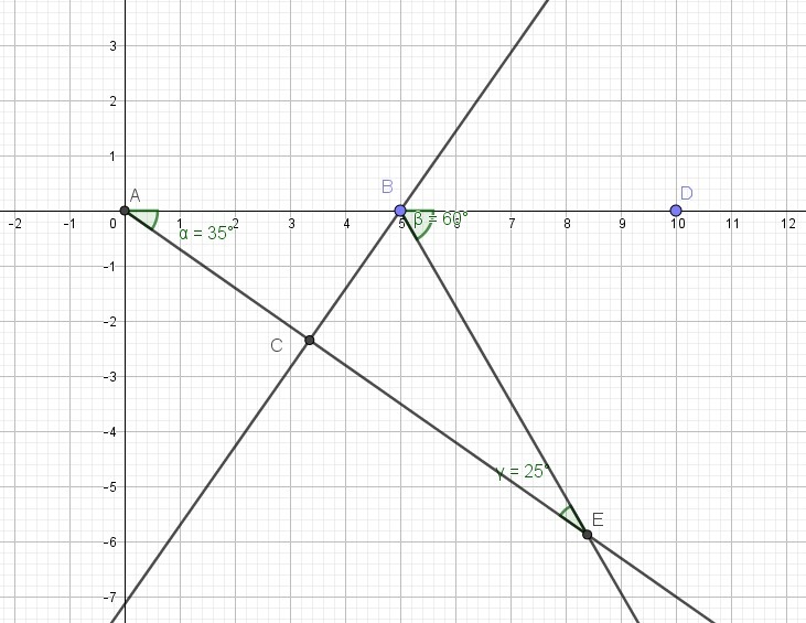 We can solve for the lengths of FE and GE exactly by applying the law of sines: