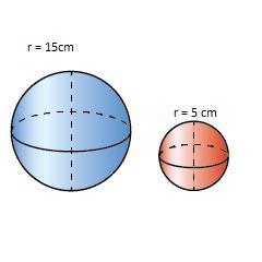 The surface area of the red sphere is calculated by substituting 5 cm for r in the above formula.