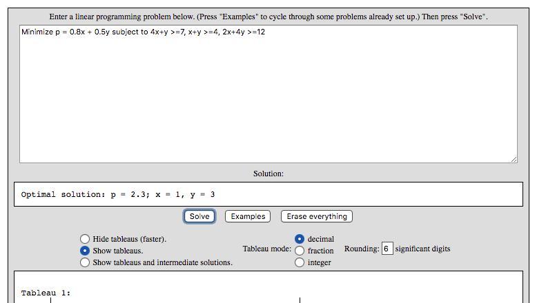 As with the on-line calculator, the graphical solution finds the optimum combination to be ...