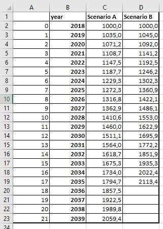 and so on, the same for scenario B