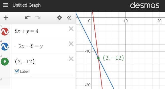 One can also graph the two equations and find the point they intersect. See the attached graph.