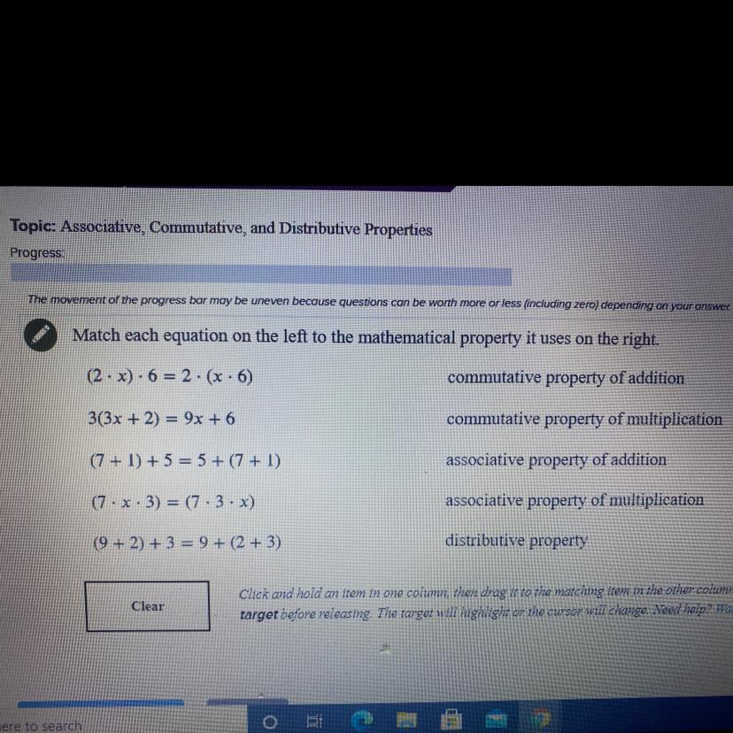 (7 · x · 3) = (7 · 3 · x) → Commutative property of multiplication, just like the commutative property of addition, this states a · b = b · a, in other words, you can "flip" or "switch the positions of" the quantities being multiplied and you will get the same result.