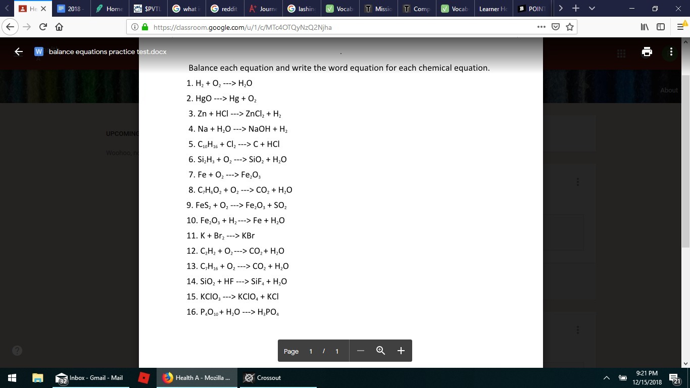 C₆H₁₂O₆ + 6O₂ → 6H₂O + 6CO₂