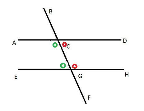 Then ∠ACG same side interior angles with ∠CGH (Alternate Interior Angles) and ∠CGE (Consecutive Interior Angles)