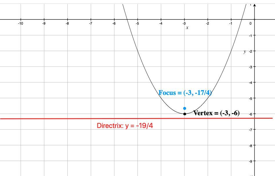 2. Vertex: (-5, 4) Focus: (-6, 4) Directrix: x = -4