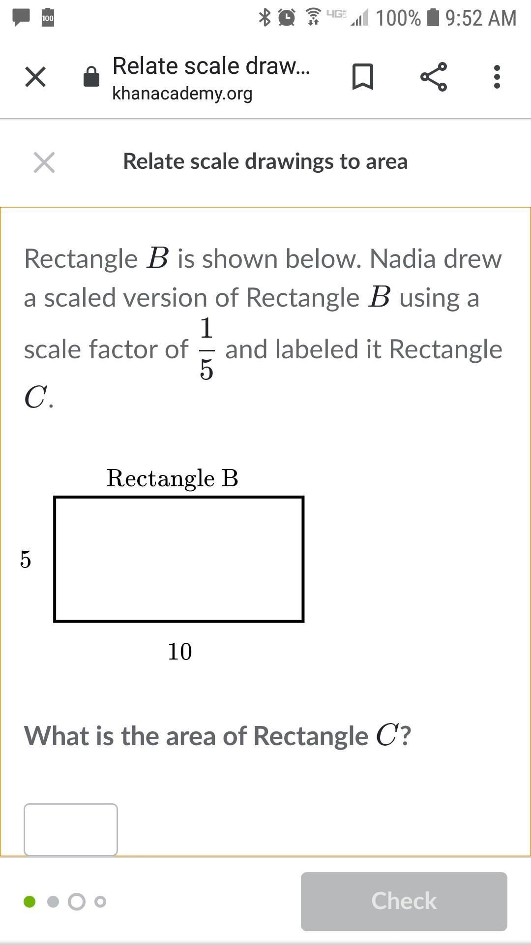 So, Area of Rectangle C is 2 if scale factor of 1/5 is applied to length and width of Rectangle B.