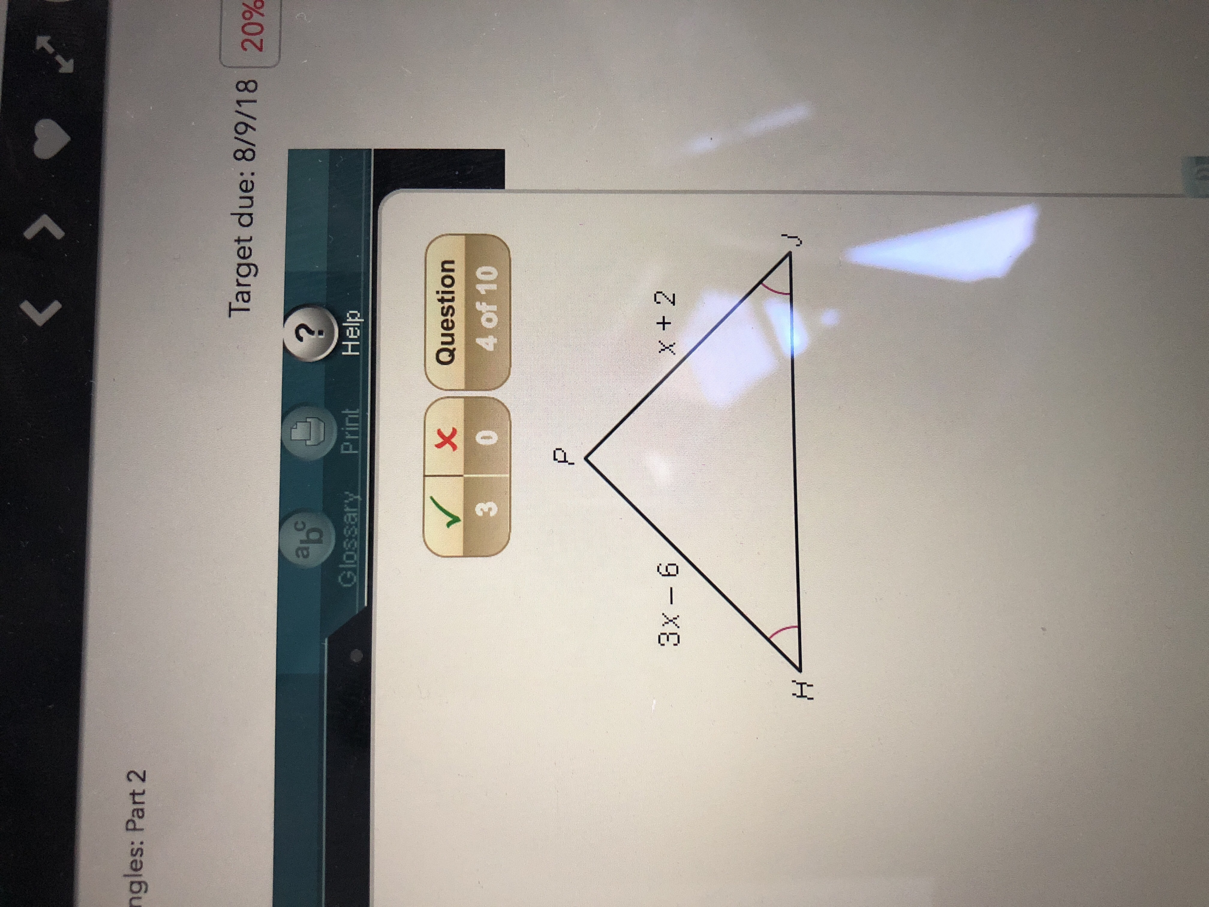 Here, HP = 3x-6 unit and PJ = x+2 units