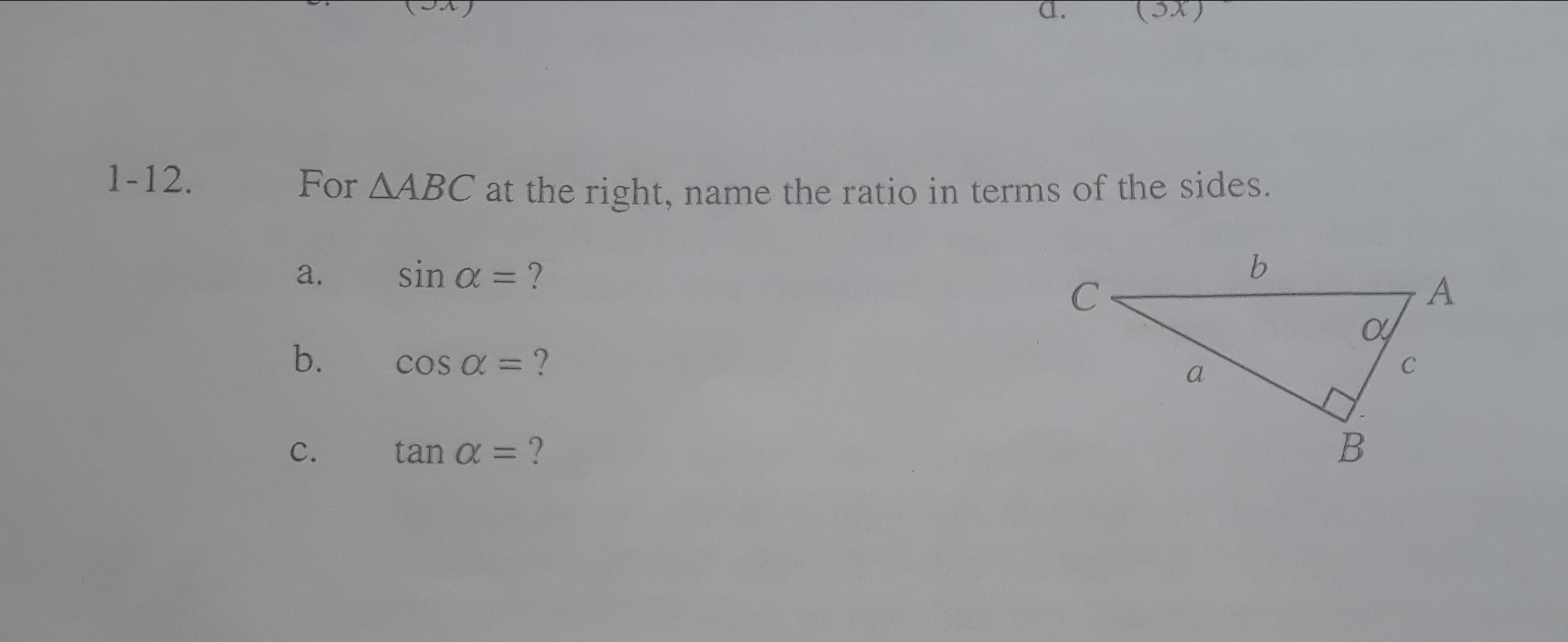 So we already know from part A that side b is the hypotenuse. And also since side c touches the angle, it is the adjacent.<u> Using this info,