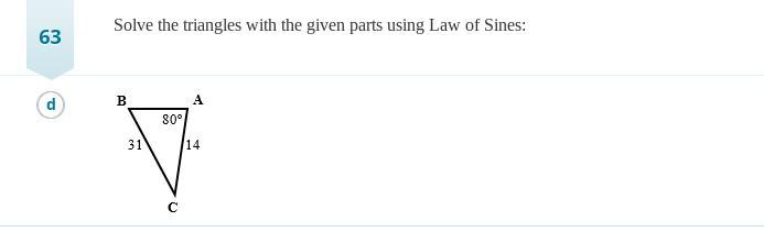 B = sin-1( sin(80) / 31 x 14)