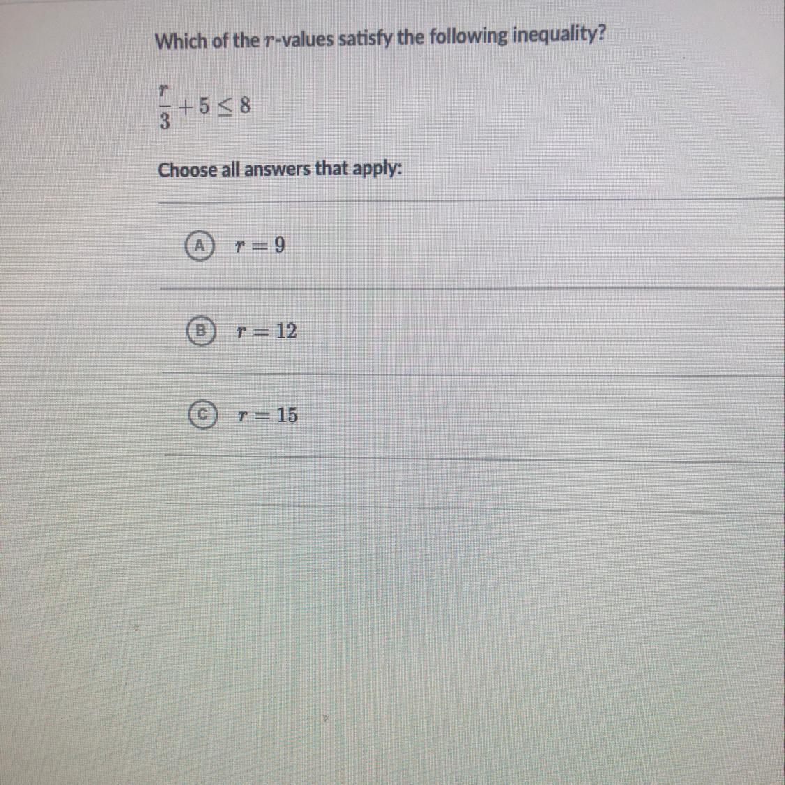 Since r is less than or equal to 9, this means that r could be 9 or smaller