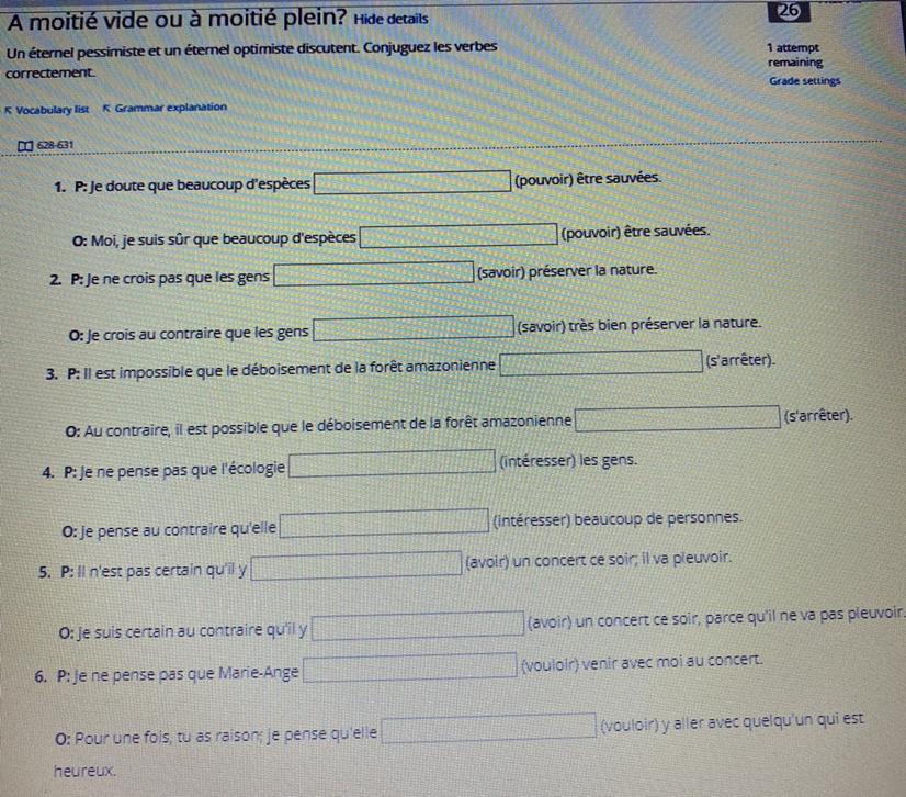1- Je doute que beaucoup d'espèces puissent être sauvées. <em>(subj.)</em>