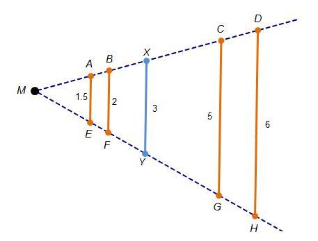 Segment XY is dilated through point M with a scale factor of 2. Which segment shows the correct result of the dilation?